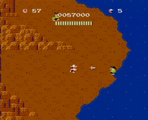 ”チャレンジャー(1985年 ハドソン FC版)”より。主人公のチャレンジャーは考古学者であるが、彼の特技はナイフ投げである